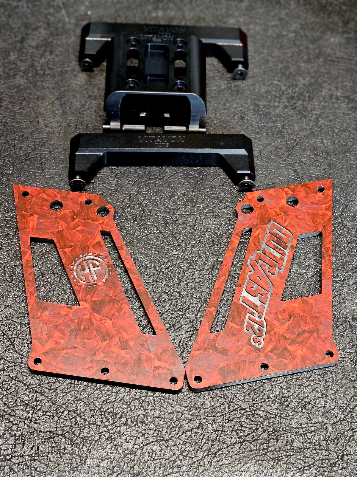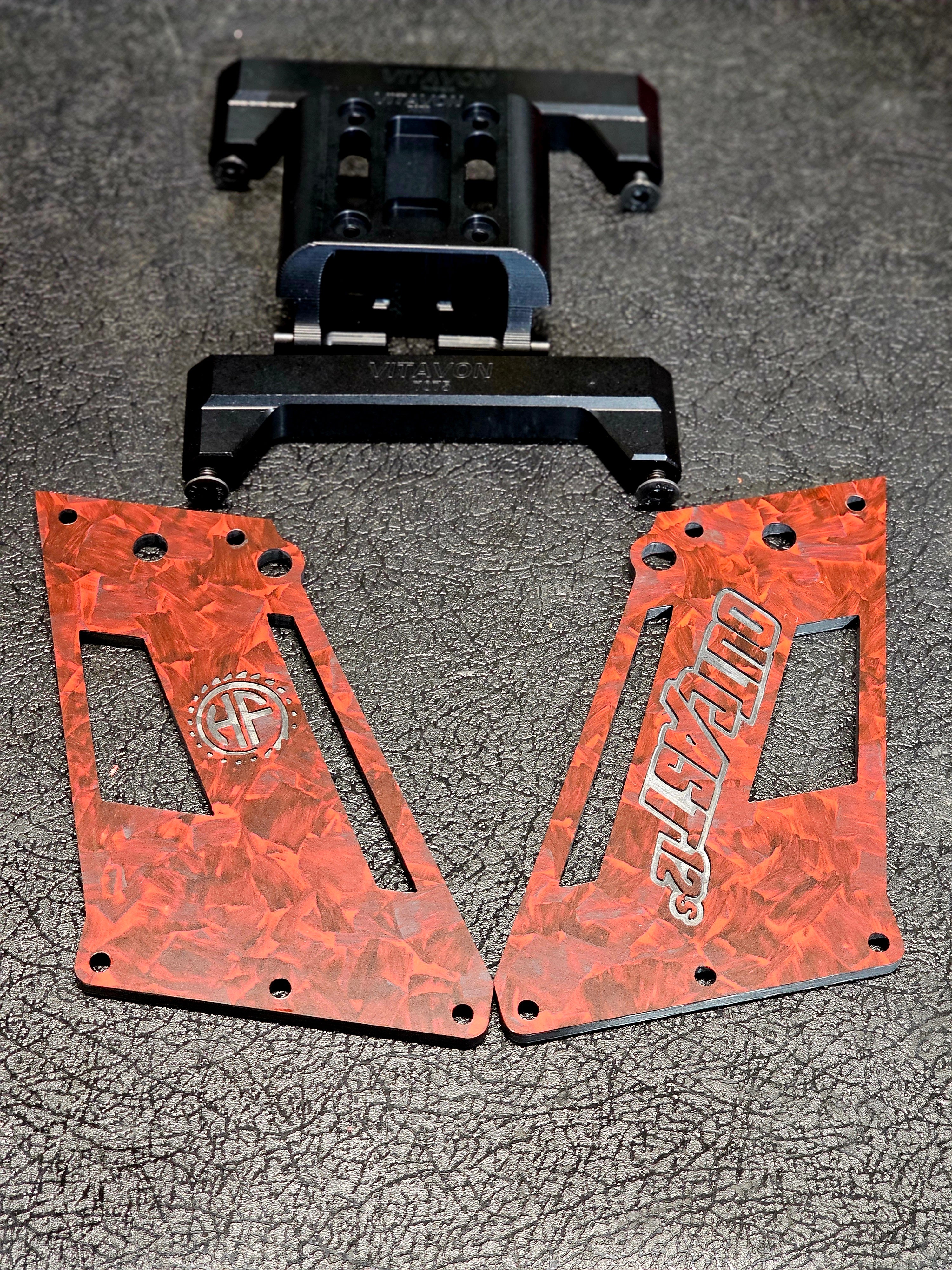 HyperFlow Fans Carbon Fiber Upgrade for Vitavon Center Tower Brace on the Arrma 8s Platform.