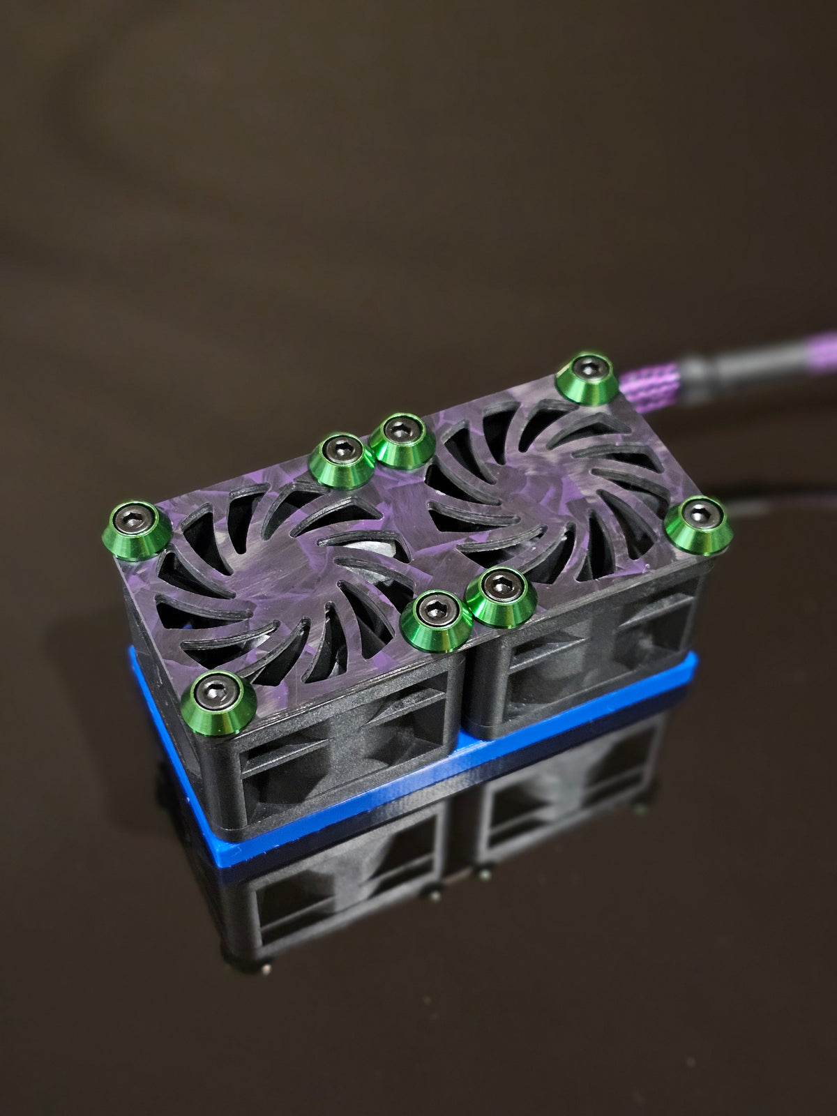 With this adapter, you can run twin 40mm fans mounted to the factory heatsink